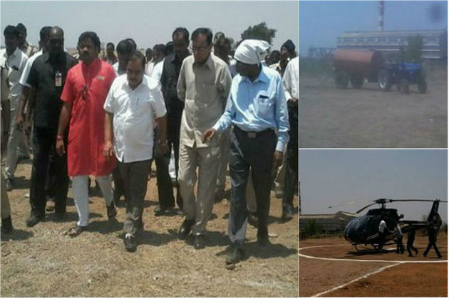 महाराष्ट्र के राजस्व मंत्री एकनाथ खड़से ने भी लातूर में सूखाग्रस्त इलाकों का दौरा करने की योजना बनाई। इस दौरान प्रशासन ने मंत्री जी के हैलिकॉप्टर के लिए हैलिपैड बनाने और हैलिकॉप्टर से उड़ने वाली मिट्टी को दबाने के लिए एक ही दिन में दस हजार लीटर पानी बहा दिया।
