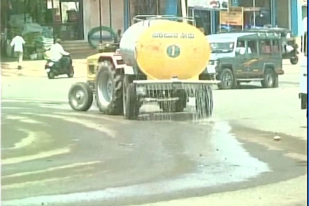 सीएम के काफिले के लिए टैंकर से रोड पर पानी का छिड़काव