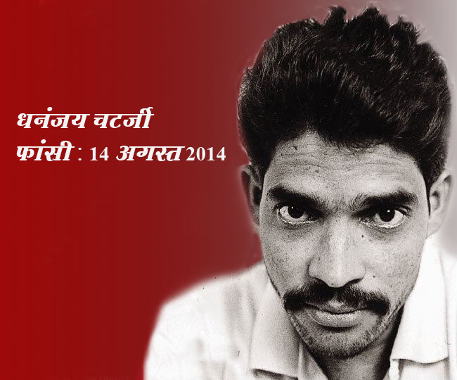 14 अगस्त 2014 को पश्चिम बंगाल की अलीपुर जेल में धनंजय चटर्जी को फांसी दी गई थी। यह सजा उसको 14 वर्षीय एक लड़की के साथ दुष्कर्म के बाद हत्या करने के आरोप में सुनाई गई थी। यह घटना 5 मार्च 1994 को कोलकाता के भवानीपुर स्थित आनंद अपार्टमेंट में घटी थी। मामला सामने आने के बाद से धनंजय को फांसी लगने तक दस साल लग गए।