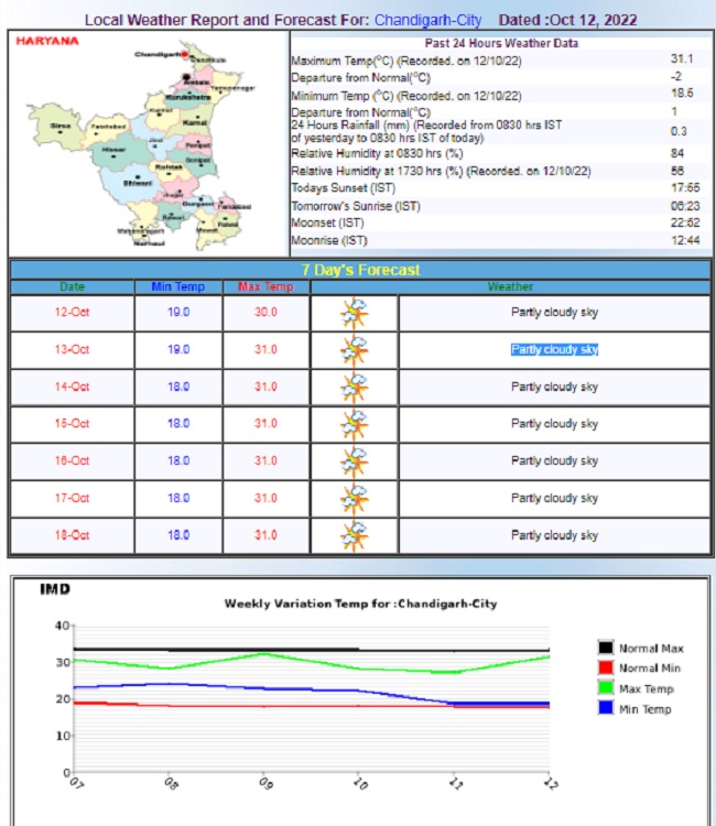 - चण्डीगढ़- मौसम साफ रहेगा। चंद्रोदय समय शाम 08:06 बजे।