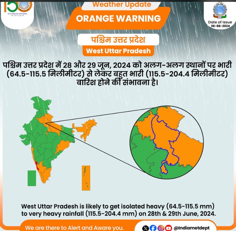 वहीं यूपी की बात करें तो राजधानी लखनऊ में आज सुबह-सुबह बारिश का एंट्री होगी। बाकी जिलों में भी बादल छाने के साथ बरसात की संभावना है। पश्चिम उत्तर प्रदेश में 28 से 29 जून को भारी बारिश की संभावना जताई गई है। इसके साथ ही मानसून का असर हिमालयी राज्यों पर भी दिखाई देगा। यहां भी एक दो दिन में ये एक्टिव होगा।