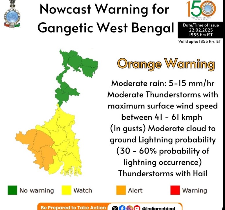 - भारत मौसम विज्ञान विभाग (आईएमडी) ने मौसम को लेकर कहा कि एक पश्चिमी विक्षोभ सक्रिय हुआ है जो 25 फरवरी से उत्तर पश्चिम भारत को प्रभावित करेगा।