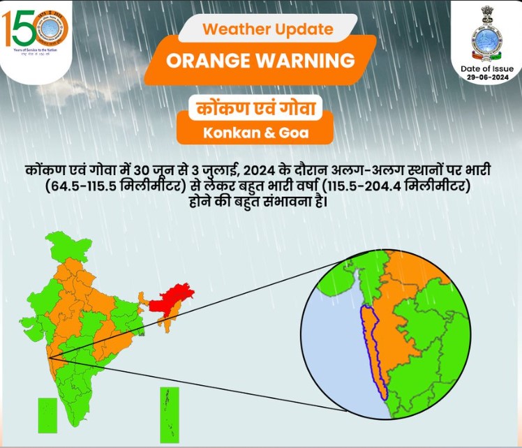 साथ ही मौसम विभाग के मुताबिक, नागालैंड, मणिपुर और त्रिपुरा में आज से 3 तीन जुलाई तक तेज बारिश की उम्मीद है। भारतीय मौसम विभाग के अनुसार, दिल्ली में 228 मिमी बारिश हुई। यह जून में राष्ट्रीय राजधानी में 24 घंटे की सबसे अधिक बारिश है।