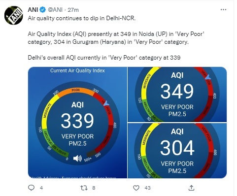 प्रदूषण से बेदम होने लगी है दिल्ली, खतरनाक स्तर पर पहुंचा AQI