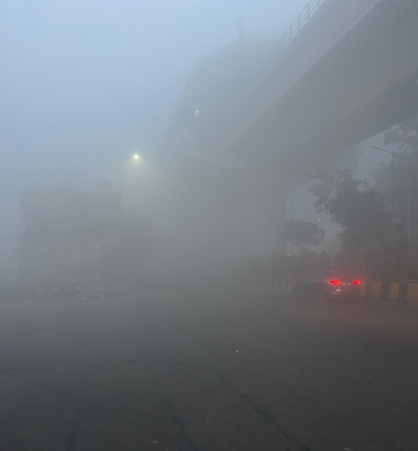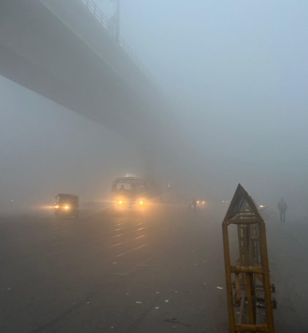 #WATCH | Delhi | Visibility in the national capital is affected as a layer of dense fog engulfs the city