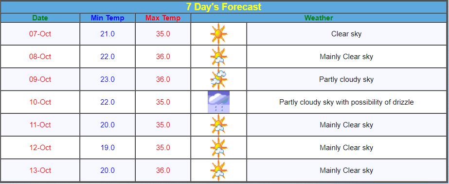 Weather Update Today। मौसम विभाग के मुताबिक आज से 11 अक्टूबर के दौरान देश के कुछ हिस्सों में गरज और बिजली के साथ हल्की/मध्यम से भारी बारिश होने की संभावना है। विभाग के मुताबिक दिल्ली में आज मौसम साफ रहेगा। हालांकि 10 अक्टूबर से बारिश की संभावना जताई गई है। यहां न्यूनतम तापमान 22 डिग्री जबकि अधिकतम तापमान 36 डिग्री सेल्सियस रहने की संभावना है।