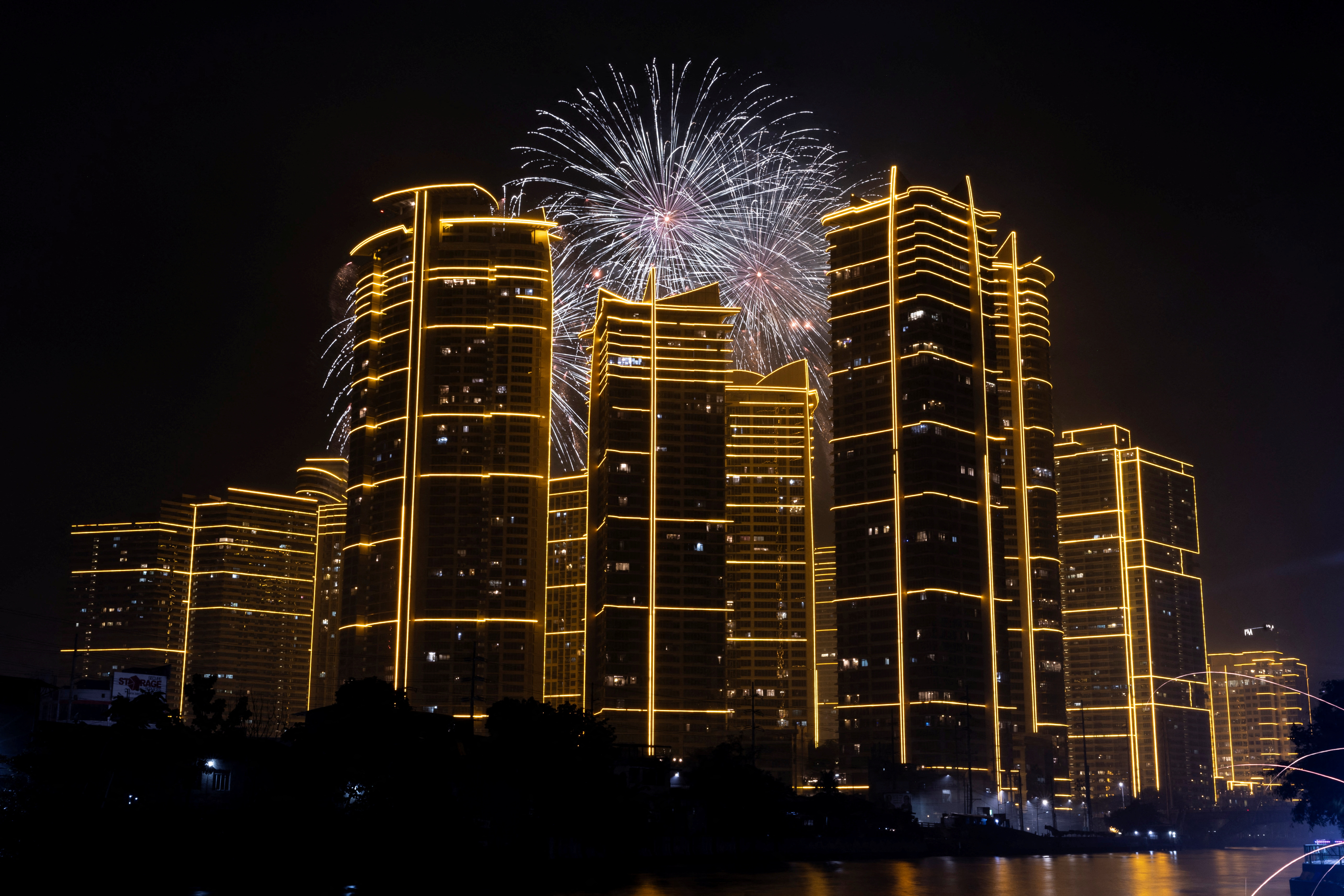 फिलीपींस के मांडलुयोंग शहर में नए साल के जश्न में रॉकवेल सेंटर पर आतिशबाजी की गई।