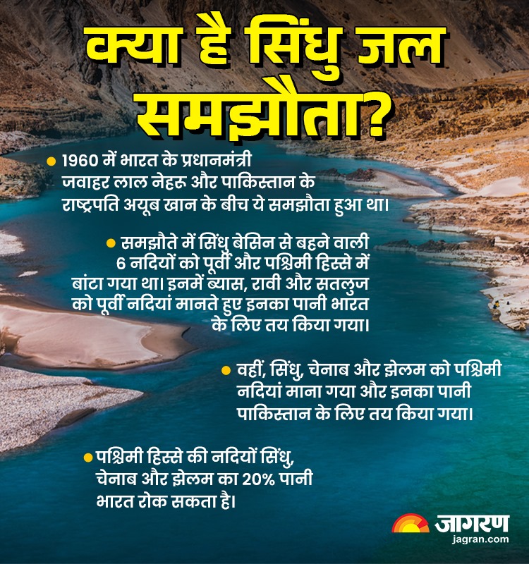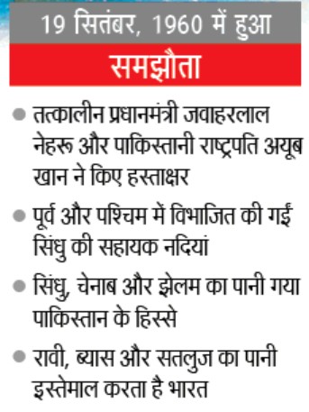 1960 में भारत के प्रधानमंत्री जवाहर लाल नेहरू और पाकिस्तान के राष्ट्रपति अयूब खान के बीच ये समझौता हुआ था। समझौते में सिंधु बेसिन से बहने वाली 6 नदियों को पूर्वी और पश्चिमी हिस्से में बांटा गया था।