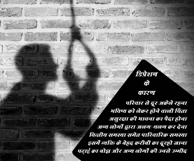 इसके अलावा कुछ क्रॉनिक कंडिशन (chronic conditions) भी इसमें कारगर साबित होती हैं। इसमें डायइबिटीज (diabetes), दिल की बीमारी (heart disease) शामिल है। इन बीमारियों से ग्रसित 50-60 फीसद मरीज डिप्रेशन के शिकार होते हैं। ये कारण डिप्रेशन के रिस्क को कई फीसद बढ़ा देते हैं। साइक्लोजिकल फैक्टर्स (psychological effects) में हमारे दिमाग में आने वाले विचार, पर्सनेलिटी, परिवार, पढ़ाई और नौकरी का तनाव शामिल हैं।