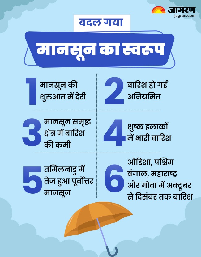 भारत के मानसून का पैटर्न बदलने के पीछे कई कारण हैं। बारिश अब ज्यादातर अनियमित हो गई है। मानसून की शुरुआत में देरी होने लगी है, जिससे खेती-किसानी प्रभावित होती है और कई इलाकों में सूखा पड़ जाता है। कई जगहों पर सूखा पड़ा होता है तो कई जगहों पर भारी बारिश हो जाती है। इसमें जलवायु परिवर्तन की मुख्य भूमिका है। हिंद महासागर का गर्म होना, वैश्विक वायुमंडलीय बदलाव और शहरीकरण मानसून के पैटर्न को बदल रहा है।