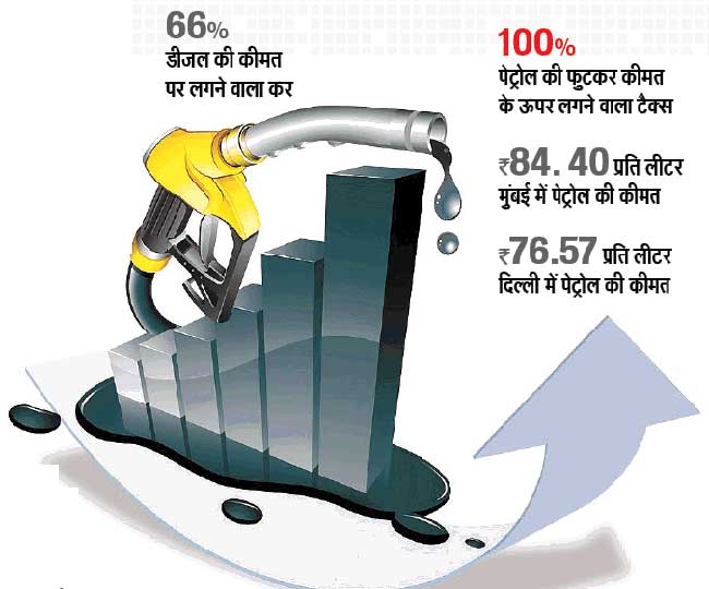 कच्चे तेल की कीमत और पेट्रोल-डीजल की बढती मांग इसकी मुख्य वजह है। कच्चे तेल की कीमत हालांकि अभी 70 डॉलर प्रति बैरल है। याद होगा कि 2013-14 में यह रेट 107 डॉलर प्रति बैरल तक पहंच गया था। उस वक्त जब कीमतें सरकारी नियंत्रण से मुक्त हो गईं तो इसका सीधा असर कीमतों पर पड़ा। हालांकि इंडियन बास्केट के कच्चे तेल की कीमत घटी, लेकिन कई तरह के टैक्स की वजह से देश में पेट्रोल-डीजल महंगा होता चला जा रहा है।