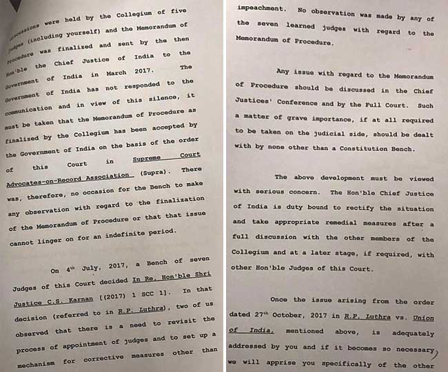 जस्टिस ने आगे कहा, सीजेआई से अनियमितताओं पर बात की थी। कई गड़बड़ियों की शिकायत की। हम नहीं चाहते की 20 सालों में हमपर कोई आरोप लगे। न्यायपालिका की निष्ठा पर सवाल उठाए जा रहे हैं। लेकिन सीजेआई ने कोई कार्रवाई नहीं की।