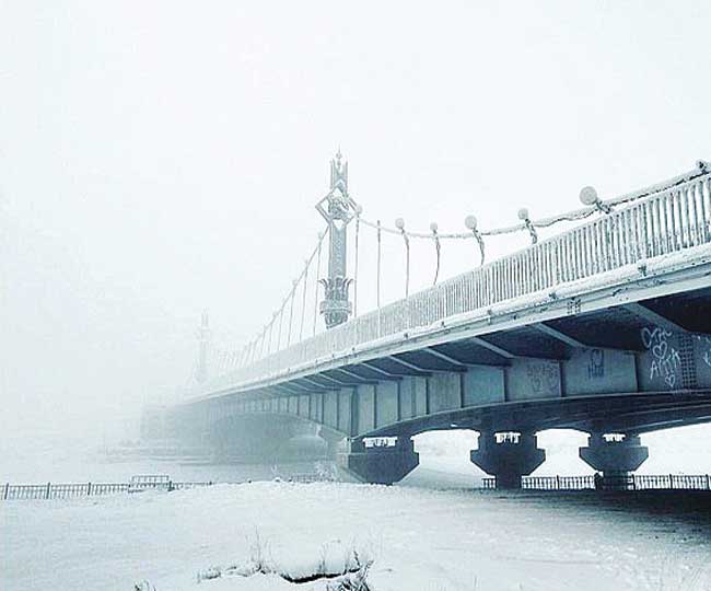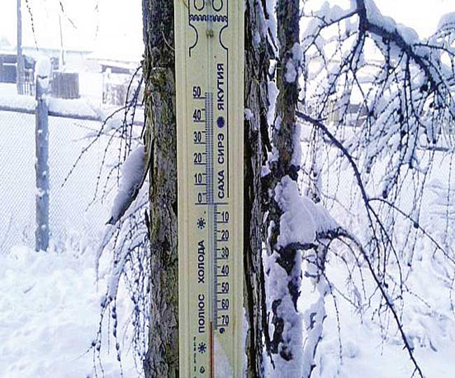 नई दिल्ली (जेएनएन)। पिछले दिनों अमेरिका में ठंड से जीवन बेहाल था। अब रूस के साइबेरियाई गांव ओइमयाकन में तापमान शून्य से 62 डिग्री सेल्सियस नीचे पहुंच गया है। इसे धरती का सबसे सर्द बसावट वाला स्थान कहा जा रहा है। हालात इतने खराब हैं कि यहां तापमान मापने के लिए लगाया गया थर्मामीटर भी ठंड के कारण टूट गया। लोगों को दावा है कि उनके निजी थर्मामीटरों में तापमान -67 डिग्री सेल्सियस तक रिकॉर्ड हुआ है। इतनी ठंड में लोगों के सिर के बाल और पलकें तक जम गई है।