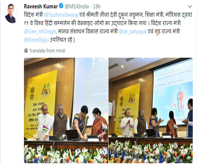 18-20 अगस्त तक मॉरीशस में होगा 'विश्व हिंदी सम्मेलन, लोगो और वेबसाइट लॉन्च