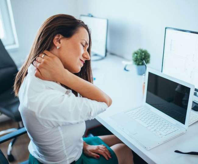 - गर्दन, पीठ व कमर में दर्द और जकड़न