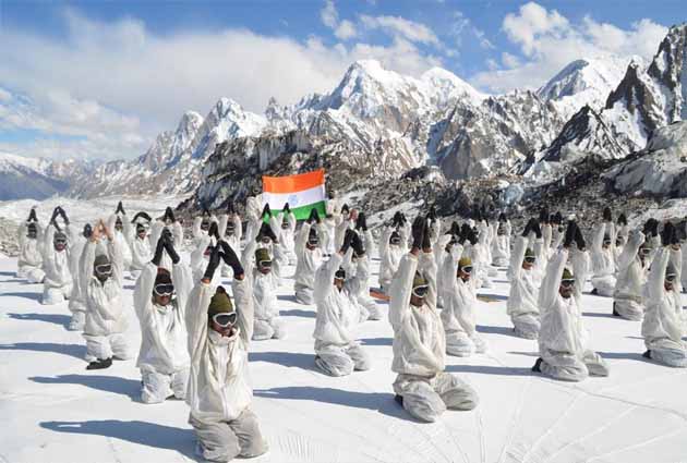 ट्विटर और फेसबुक पर सबसे ज्यादा लोगों का ध्यान आकर्षित करने वाली तस्वीर सियाचिन और करगिल की चोटियों पर सैन्याधिकारियों और सैनिकों के योग की थी। दुनिया के सबसे ऊंचे युद्घक्षेत्र सियाचिन में ही नहीं चीन के साथ अग्रिम चौकियों से लेकर करगिल की चोटियों पर तैनात सैन्य कर्मियों व अधिकारियों ने विपरीत मौसमी परिस्थितियों के बीच सुबह तड़के योगाभ्यास कर, विश्व योग दिवस मनाया।