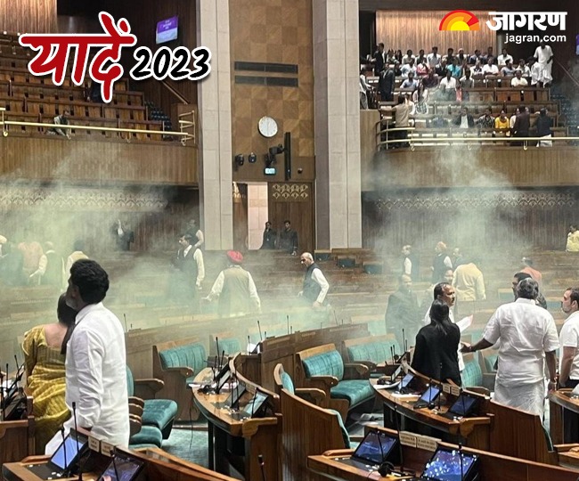 संसद हमले की 22 बरसी पर सुरक्षा में चूक: यह फोटो संसद में सुरक्षा की चूक की है। देश के सबसे सुरक्षित माने जाने वाले संसद भवन में 13 दिसंबर को सुरक्षा में चूक की दो घटनाएं घटीं। पहली- संसद के बाहर दो लोगों के प्रदर्शन करने और दूसरी- लोकसभा में कार्यवाही के दौरान दर्शक दीर्घा में बैठे दो लोग सदन के बीच में कूदने की। जब दो संदिग्ध सदन में कूदे तो सदन में कुछ धुआं सा उठा। हालांकि, दोनों ही घटनाओं के संदिग्धों को सुरक्षाकर्मियों ने हिरासत में ले लिया है और पूछताछ की जा रही है।