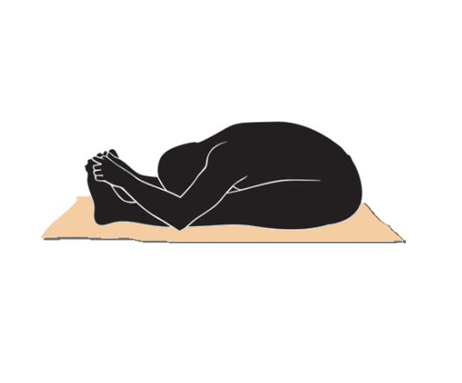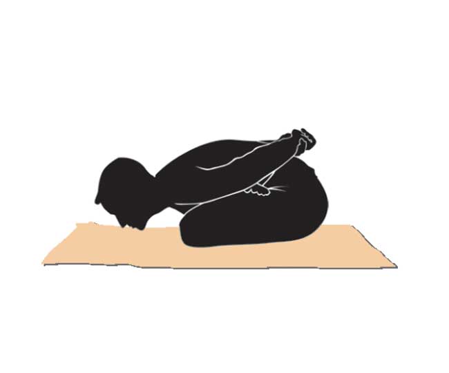ऐसे करें: वज्रासन में बैठिए। अंगूठे को अंदर करके मुट्ठी बांधें। मुट्ठी को नाभि के पास रखें और उस पर दबाव डालें। धीरे-धीरे सांस छोड़ते हुए, कमर से आगे की तरफ झुके। सीने को नीचे लायें ताकि जांघ पर आ सके। सिर और गर्दन को ऊपर उठायें। दृष्टि को सीधा रखें।