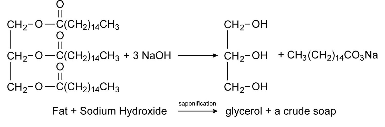 सोप (Soap) एक सफाई एजेंट होता है, जो कि एनिमल फैट और सब्जियों के तेल से बना होता है। इसे बनाने के लिए फैटी एसिड को NaOH के घोल के साथ गर्म किया जाता है। यह एक प्रकार की केमिकल प्रक्रिया होती है, जिसे Saponification कहा जाता है। केमिकल प्रक्रिया पूरी होने पर अंत में ग्लीसरोल प्राप्त होता है, जिससे साबुन तैयार हो जाता है।