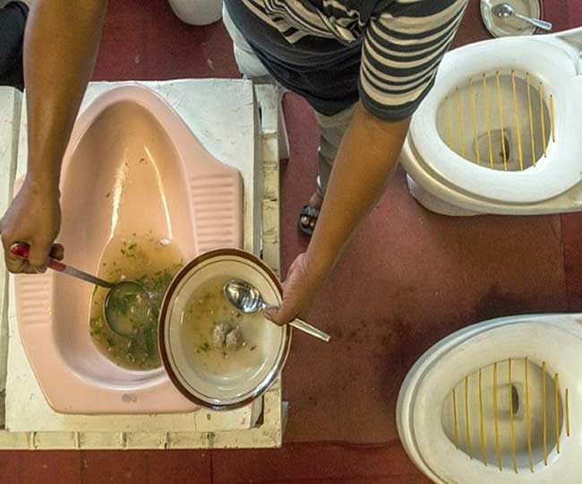 टॉयलेट, लेट्रीन और पाखाना शब्द सुनते ही मन अजीब सा हो जाता है। सोचिए अगर शौचायलय की सीट में ही खाना पड़े तो क्या हो। घबराएं नहीं। इंडोनेशिया में ऐसे टॉयलेट थीम कैफे है जो अपने ग्राहकों को खाने का सामान टॉयलेट सीट में से सर्व करते हैं, और कई कैफे में टॉयलेट के बर्तन में ही खाने को दिया जाता है। टॉयलेट सीट में सूप रखते हैं, और कस्टमर्स भी बड़े चाव से इसका स्वाद लेते हैं।
