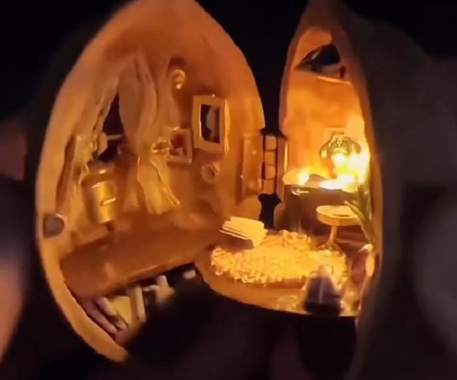 लेकिन जैसे-जैसे वीडियो आगे बढ़ता है अखरोट के अंदर बनाई गई खूबसूरत डिजाइन देखकर आंखें चौंधिया जा रही है। जी हां डिजाइन किए गए इस अखरोट में कभी सुंदर लाइब्रेरी, तो कभी लग्जरियस रूम बनाया हुआ दिखाई देता है। अखरोट के अंदर लाइट और साज-सज्जा के समान के साथ-साथ तमाम छोटी-छोटी चीजें रखी गई हैं। जिन्हें देखकर हर कोई मोहित हो जा रहा है।