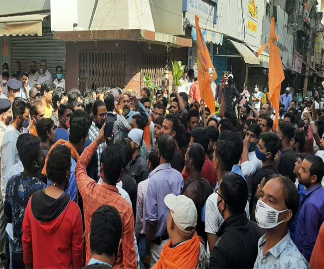 इसके बाद सांसद संजय सेठ, विधायक सीपी सिंह पहुंचे। इसके बाद जैसे ही बाहर लोगों की इसकी सूचना मिले। विभिन्न हिंदू संगठनों के लोग रंगरेज गली पहुंचने लगे। इसके बाद जमकर हंगामा हुआ। कुछ ने जहां विरोध में स्वेच्छा से अपनी दुकान बंद कर दी। वहीं आक्रोशित लोगों ने जबरन कुछ दुकानें बंद कराई।