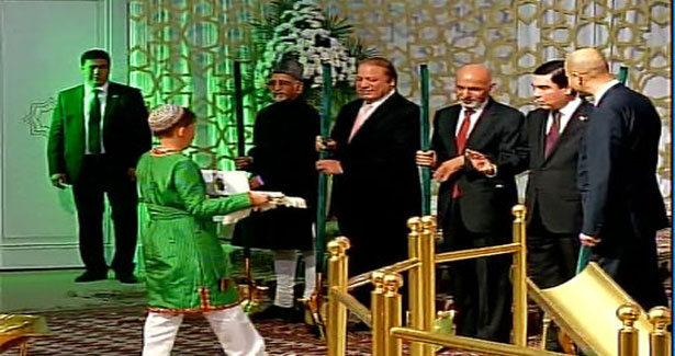 तुर्कमेनिस्तान की राजधानी अश्गाबात से करीब 311 किमी दूर मैरी में तापी पाइपलाइन विधिवत शिलान्यास किया गया। इस मौके पर उपराष्ट्रपति हामिद अंसारी पाकिस्तान के पीएम नवाज शरीफ और अफगानिस्तान के राष्ट्रपति शामिल हुए।