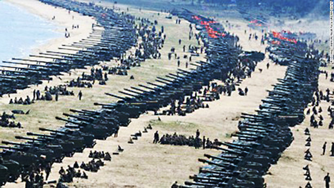 और तोपों का इस्तेमाल किया जाता है। लेकिन उस प्रदर्शन को देखकर लग रहा था जैसे वह युद्ध से पहले हथियारों में लगे जंग को छुड़ा रहा हो। सैन्य अभ्यास और मोर्चे पर हथियारों और युद्धक सामग्री के जमावड़े में अमेरिका भी पीछे नहीं है।
