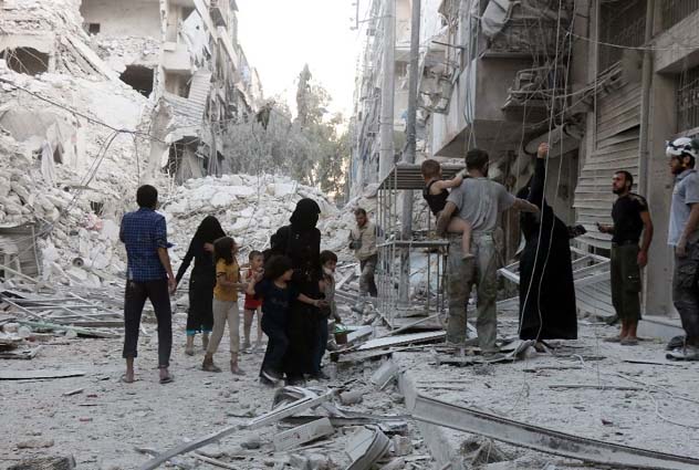 अलेप्पो (एएफपी)। पिछले एक हफ्ते से जारी युद्धविराम टूटने के बाद सीरिया में विद्रोहियों के कब्जे वाले अलेप्पो शहर में रूस के हवाई हमलों में बड़े पैमाने पर जानमाल की तबाही हुई है। पिछले 24 घंटे में रूसी लड़ाकू विमानों ने सीरियाई सेना के साथ मिलकर 200 हमले किए, जिसमें 100 से ज्यादा लोग मारे गए। जानकारी के मुताबिक यह हमले बैरल और वैक्यूम बमों से किए गए थे। यूरोपीय यूनियन ने इन हमलों को अंतरराष्ट्रीय मानवीय कानून के खिलाफ करार देते हुए इन्हें तुरंत रोकने की अपील की है। इस मसले पर ब्रिटेन, फ्रांस अमेरिका ने यूएनसएससी की बैठक बुलाई है।