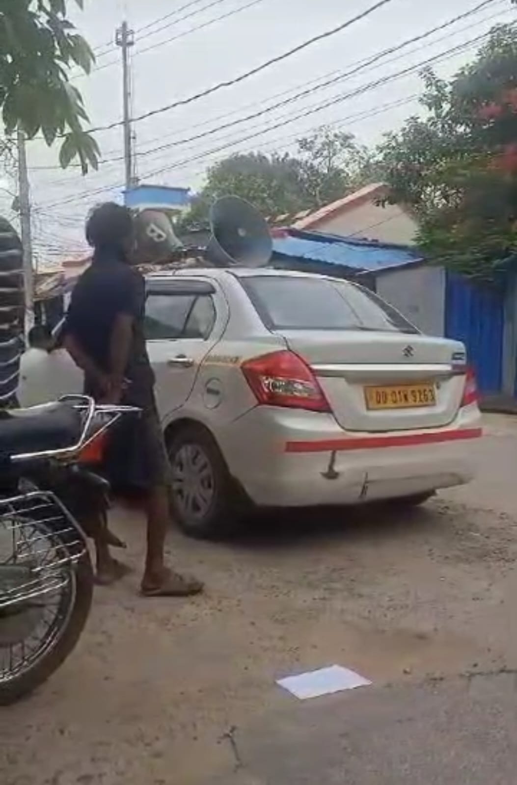गाड़ी पर लाउडस्पीकर बांध कर कर्फ्यू का ऐलान करता बालेश्वर जिला प्रशासन।