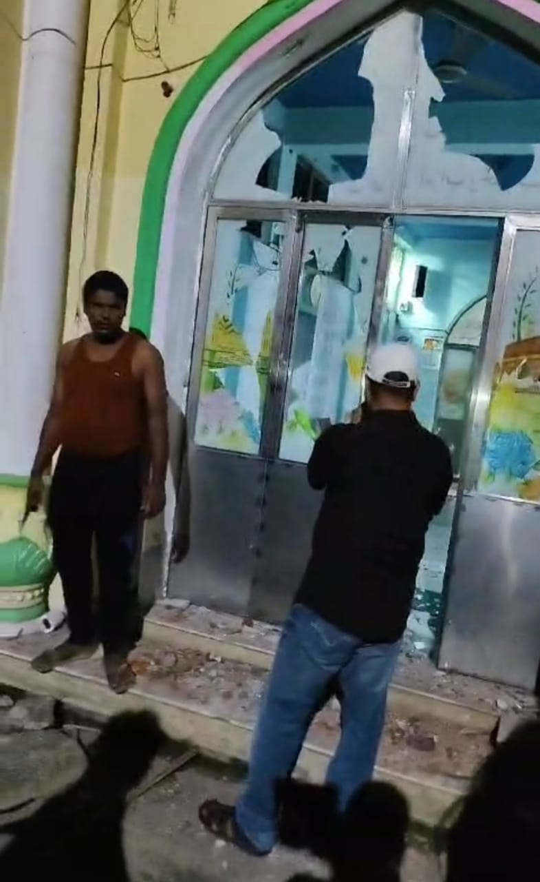 बालेश्वर में एक समुदाय के पूजा स्थल में तोड़फोड़ किए जाने का फोटो