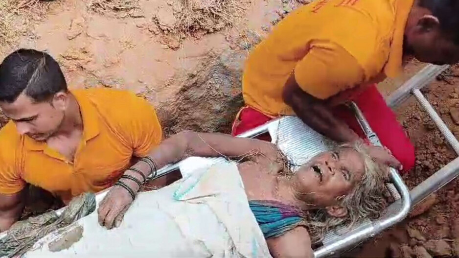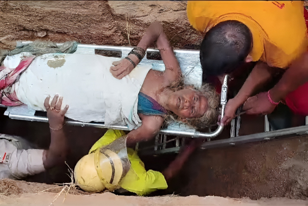 फायर ब्रिगेड और ओडीआरएएफ की टीम ने कड़ी मशक्कत के बाद वृद्धा को बाहर निकाला। समानांतर में एक और गड्ढा खोदा गया और बूढ़ी महिला को बचाया गया।
