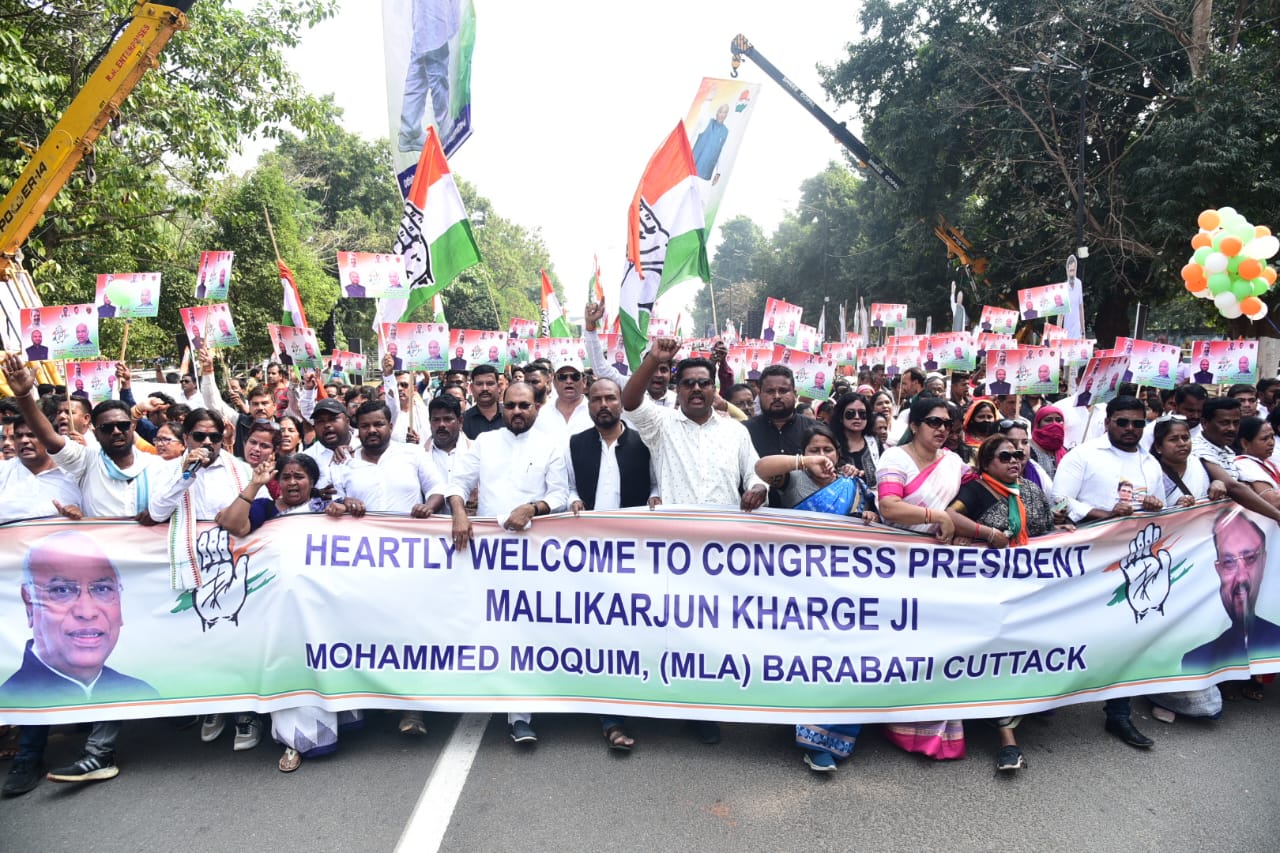 भुवनेश्वर बीजू पटनायक अंतर्राष्ट्रीय एयरपोर्ट से शिशु भवन चौक, राजमहल चौक होते हुए एक विशाल रैली में सभा स्थल पर लाया गया। यहां पर पहुंचने के बाद प्रदेश के नेताओं ने कांग्रेस अध्यक्ष खरगे का भव्य स्वागत किया।