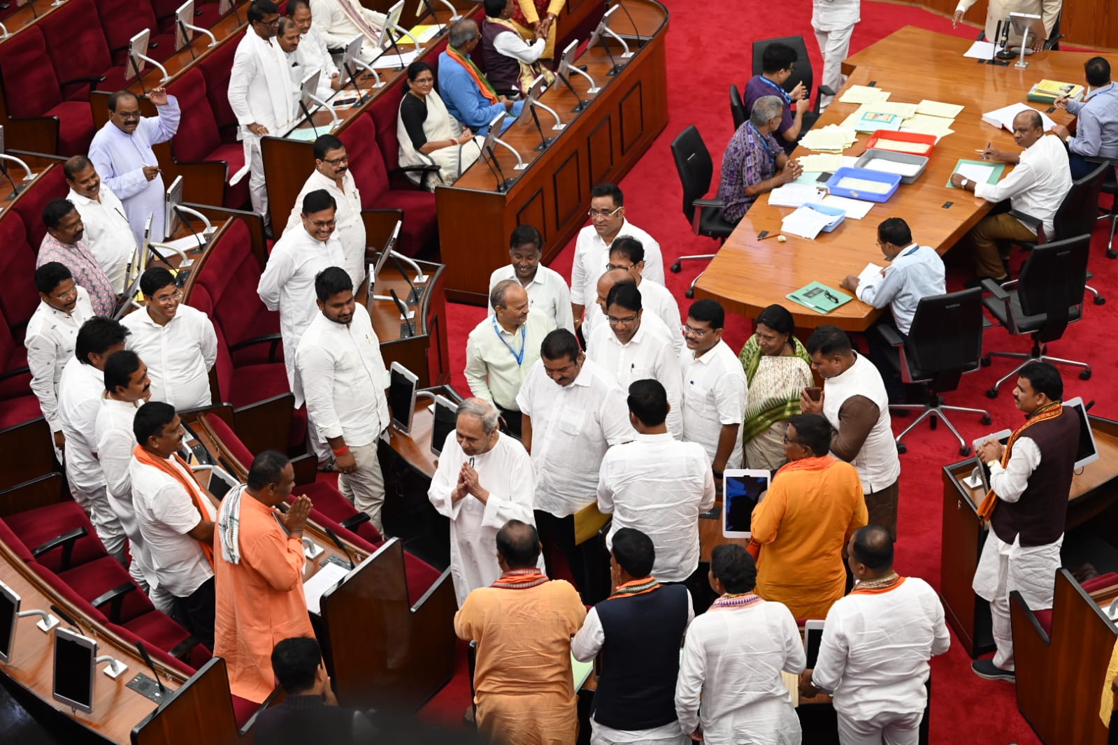 मुख्यमंत्री मोहन चरण माझी, उप मुख्यमंत्री कनक वर्द्धन सिंहदेव, प्रभाती परिड़ा के साथ तमाम भाजपा एवं अन्य सभी विधायकों ने अपनी सीट से खड़े होकर नवीन पटनायक का स्वागत सम्मान किया।