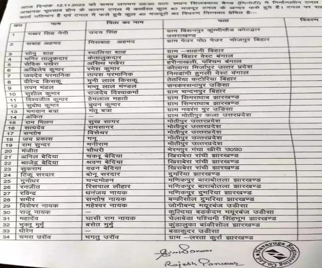 पांच ओड़िआ श्रमिक भी उन 40 सदस्यीय श्रमिकों का हिस्सा थे जो सुरंग के निर्माण कार्य में लगे हुए थे। सुरंग के अंदर फंसे अन्य श्रमिक ज्यादातर बिहार, झारखंड, उत्तर प्रदेश, पश्चिम बंगाल, उत्तराखंड और हिमाचल प्रदेश के हैं।