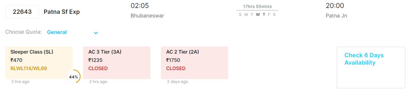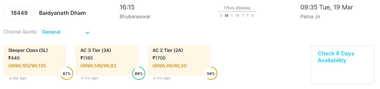 भुवनेश्वर से पटना जाने वाली ट्रेनों में वेटिंग की स्थिति