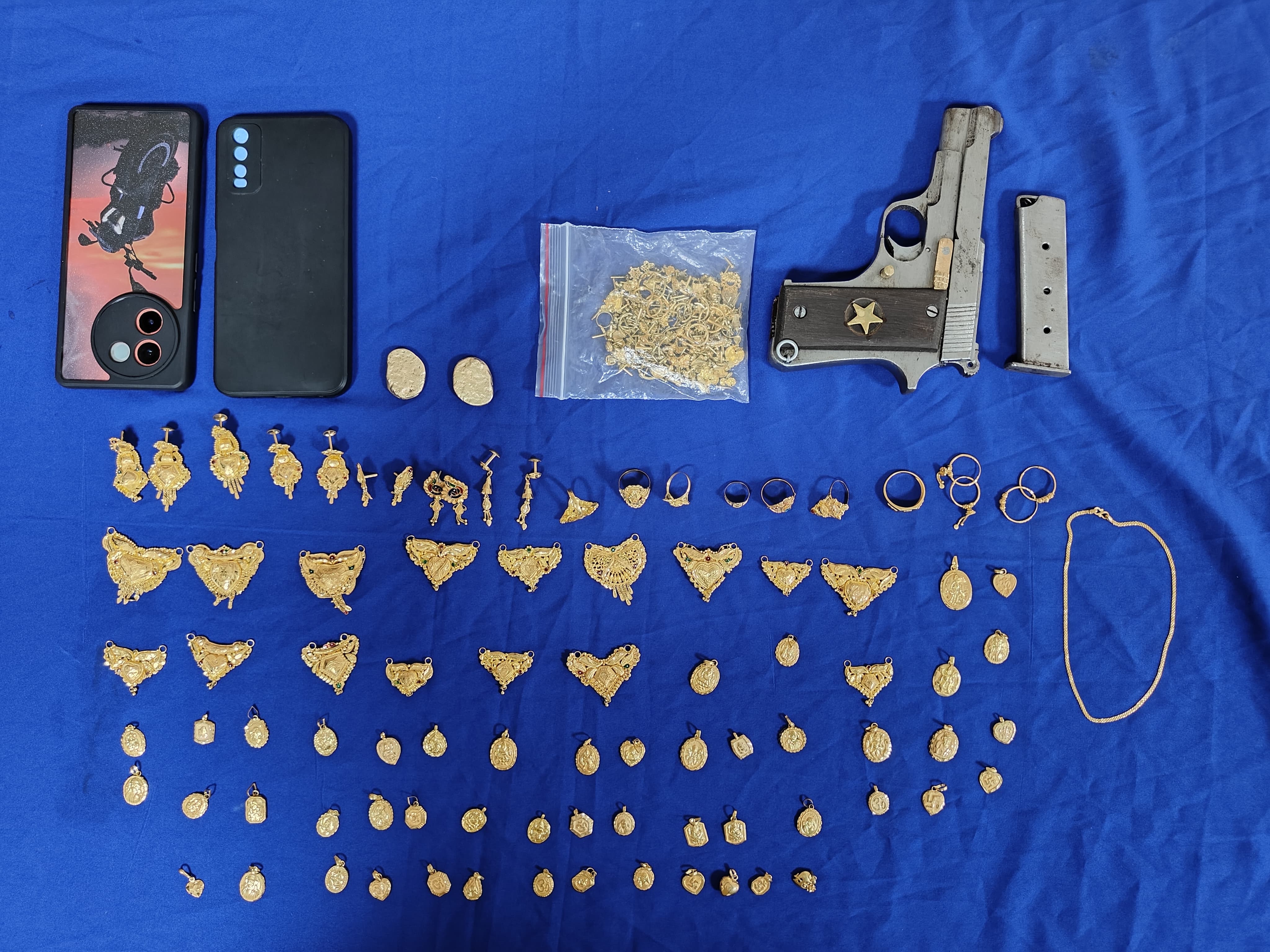 इस डकैती घटना को सुलझाते हुए पुलिस एक सप्ताह के अंदर डकैती में शामिल सभी 7 आरोपियों को गिरफ्तार किया है। जबकि उनके पास से दो मोबाइल फोन, दो गाड़ी, एक पिस्टल, 175 ग्राम सोने की जेवर, 73 ग्राम वजन का पिघला हुआ सोने की बिस्कुट आदि बरामद किए गए हैं।