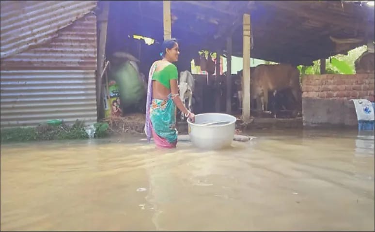 पानी उतरते ही बर्बादी की तस्वीर और भी दर्दनाक दिख रही है।टूटी दीवारें, गिरे मकान, खेतों में सड़ चुकी फसलें और मदद की आस में बैठे ग्रामीण।