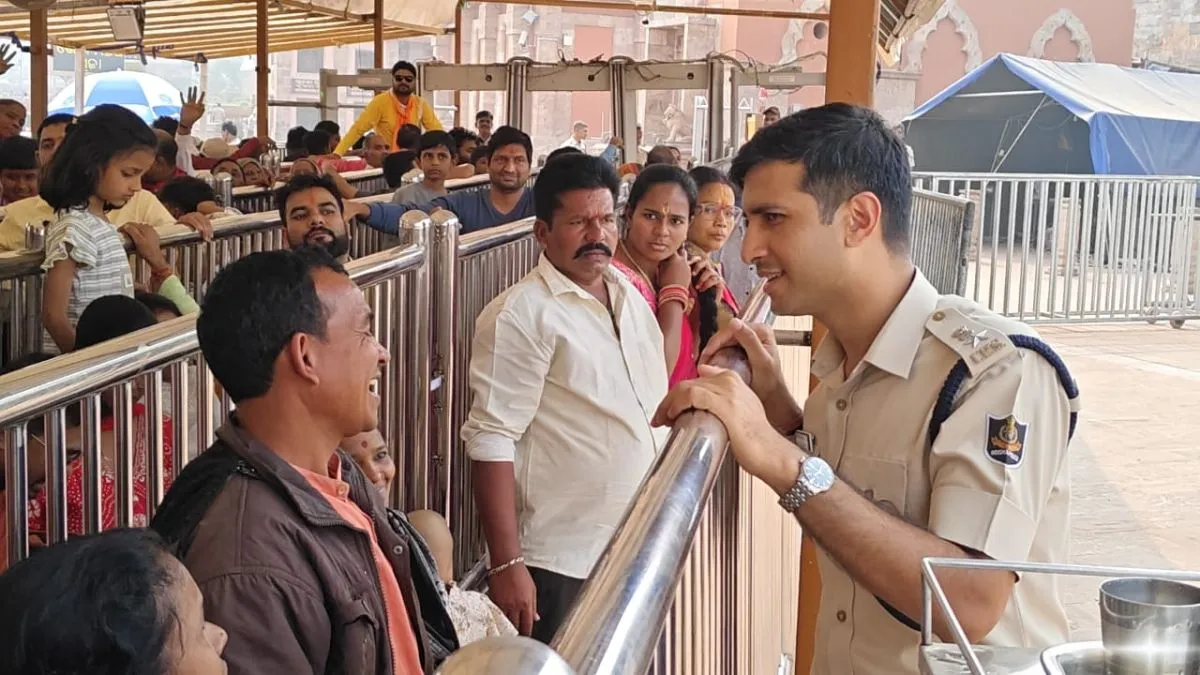 दर्शन करने आई भीड़ से बात करते पुलिस अधिकारी। फाइल फोटो