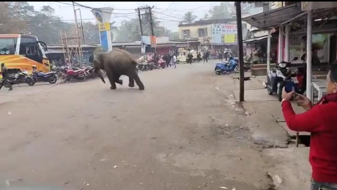 आज अचानक बारीपदा शहर में इस जंगली हाथी को देख लोग कुछ समझ पाते कि हाथी ने लोगो को खदेड़ना शुरू कर दिया था जंगली हाथी के आतंक से कोई भी जान माल को नुकसान नहीं पहुंचा।