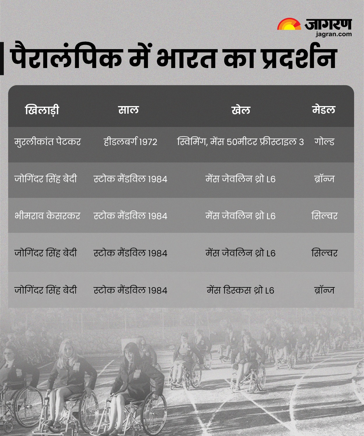 - भारत ने 1984 के बाद से हर पैरालंपिक खेलों में हिस्सा लिया, लेकिन मेडल एथेंस में 2004 पैरालंपिक में मिला।