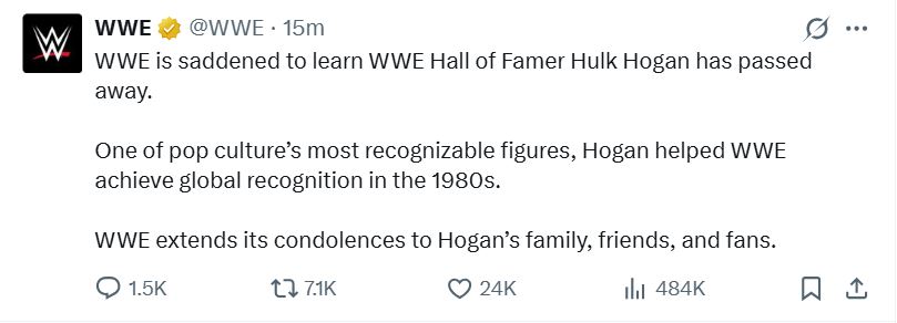 खबरों की मानें तो गुरुवार की सुबह हल्क के घर पर डॉक्टर्स को बुलाया गया। वह फ्लोरिडा के क्लियरवॉटर में रहते थे। उनके आवास के बाहर पुलिस और डॉक्टर्स मौजूद थे। हल्क होगन को स्ट्रेचर पर एम्बुलेंस में ले जाया गया था। हालांकि, वह बचे नहीं और दुनिया को अलविदा कह दिया। 11 अगस्त 1953 को जॉर्जिया के ऑगस्टा में हल्क होगन का जन्म हुआ था।