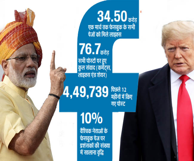 विश्व के नेताओं से जुड़े फेसबुक पेज पर किए जाने वाले संवाद में गिरावट दर्ज हुई है। 2016 में इन पेजों पर 1.1 अरब संवाद किए गए थे। 2018 में इनमें 32.3 फीसद की गिरावट देखी गई।