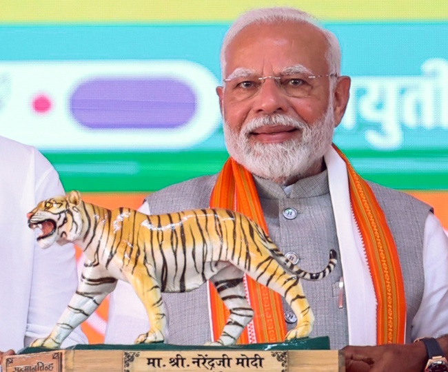 Maharashtra Election 2024 महाराष्ट्र के चिमूर में प्रधानमंत्री नरेंद्र मोदी ने मंगलवार को एक जनसभा को संबोधित किया। इस दौरान पीएम मोदी ने विपक्षी गठबंधन महा विकास अघाड़ी को आड़े हाथों लिया। उन्होंने अघाड़ी को भ्रष्टाचार का सबसे बड़ा खिलाड़ी बताया। पीएम मोदी ने कांग्रेस पर भी निशाना साधा। उन्होंने कहा कि कांग्रेस ने विकास को बाधा पहुंचाने में डबल पीएचडी कर रखी है।