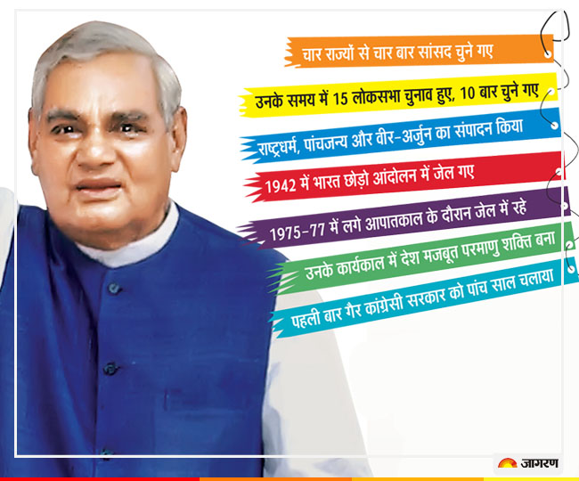 नई दिल्ली, जेएनएन। 25 दिसंबर 1924 को ग्वालियर के कृष्ण बिहारी वाजपेयी के घर अटल बिहारी वाजपेयी का जन्म हुआ। निम्न मध्यवर्गीय शिक्षक परिवार में शुरुआती जीवन बहुत आसान नहीं था। कड़े संघर्ष और जिजीविषा से भारतीय राजनीति के शिखर पुरुष बन गए। कुशल रणनीति के लिए जाने गए। ओजस्वी भाषणों की देश-दुनिया में प्रशंसा हुई। भारतीय राजनीति पर ऐसा प्रभाव छोड़ा कि देश की राजनीति के पितामह कहे जाने लगे।