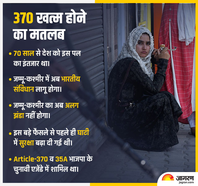 केंद्र सरकार ने 72 साल बाद जम्मू-कश्मीर को वास्तविक आजादी देकर उसे सही मायनों में भारत का अभिन्न अंग बना दिया है। मतलब अब जम्मू-कश्मीर का कोई अलग झंडा नहीं होगा। वहां भी अब तिरंगा न केवल शान से लहराएगा, बल्कि उसकी शान में गुस्ताखी को जघन्य अपराध माना जाएगा, जैसा की शेष भारत में होता है। अब जम्मू-कश्मीर में भी भारतीय संविधान लागू होगा, राज्य का कोई अलग संविधान नहीं होगा। बाहरी लोग वहां जाकर स्थायी तौर पर रह सकेंगे, संपत्ति खरीद सकेंगे और वहां नौकरी भी कर सकेंगे। इतना ही नहीं जम्मू-कश्मीर की युवतियों को भी अब दूसरे राज्य के पुरुषों से शादी करने की आजादी मिल गई है। दूसरे राज्य में शादी करने पर अब उनकी स्थानीय नागरिकता समाप्त नहीं होगी। धारा 370 व 35ए हटाए जाने से जम्मू-कश्मीर में कई बड़े बदलाव होंगे। इस फैसले के बाद से देश के सभी राज्यों में खुशी का माहौल है। जम्मू-कश्मीर को छोड़ दें तो अन्य राज्यों के मुसलमानों ने भी इस फैसले पर खुशी जताई है।