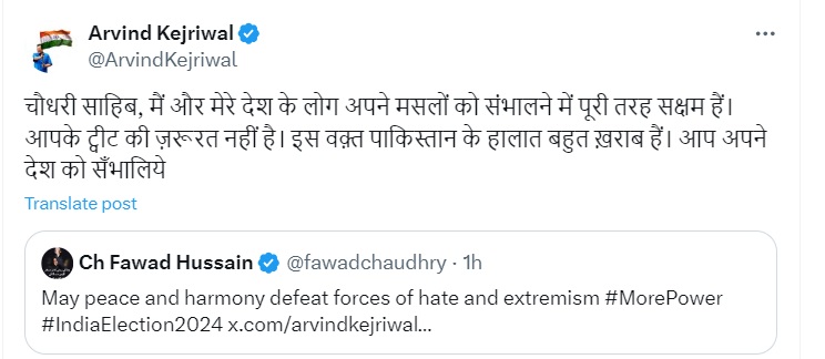 पाकिस्तानी नेता फवाद चौधरी ने केजरीवाल के लिए किया पोस्ट, दिल्ली के CM ने निकाल दी सारी हेकड़ी
