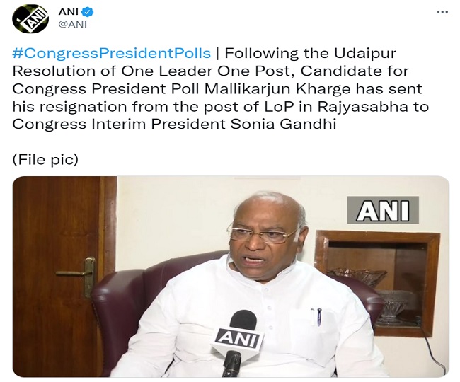 दरअसल, मल्लिकार्जुन खड़गे ने कांग्रेस अध्यक्ष पद के लिए शुक्रवार को नामांकन किया था। इसको देखते हुए उन्होंने राज्यसभा में विपक्ष के नेता के पद से अपना इस्तीफा दिया है। बता दें कि इसी साल उदयपुर में हुए कांग्रेस के चिंतिन शिविर में एक प्रस्ताव पास किया गया था। जिसमें एक नेता एक पद के प्रस्ताव को मंजूरी दी गई थी।