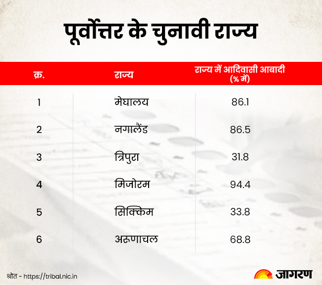 2024 तक जिन 18 राज्यों में चुनाव होने हैं, उनमें पूर्वोत्तर के छह राज्य भी शामिल हैं। ये राज्य हैं मेघालय, नगालैंड, त्रिपुरा, मिजोरम, सिक्किम और अरूणाचल प्रदेश। इन राज्यों में आदिवासी आबादी 34 से 94 फीसद तक है। वर्तमान में यहां भाजपा की सरकार है। राष्ट्रपति चुनाव के जरिए भाजपा एक बार फिर पूर्वोत्तर में कमल खिलाने की तैयारी कर ली है।