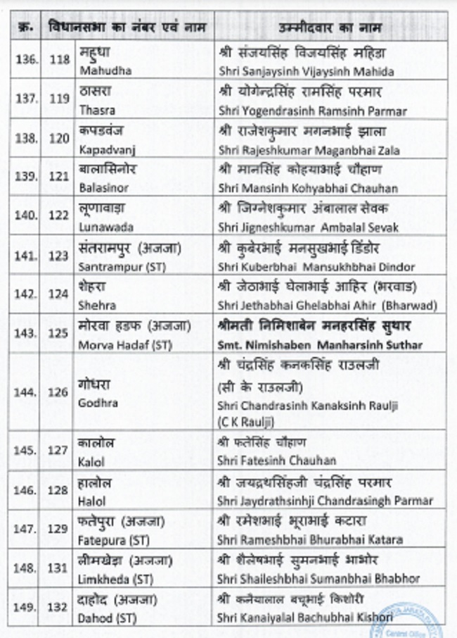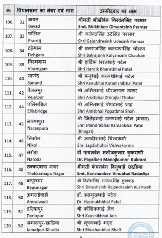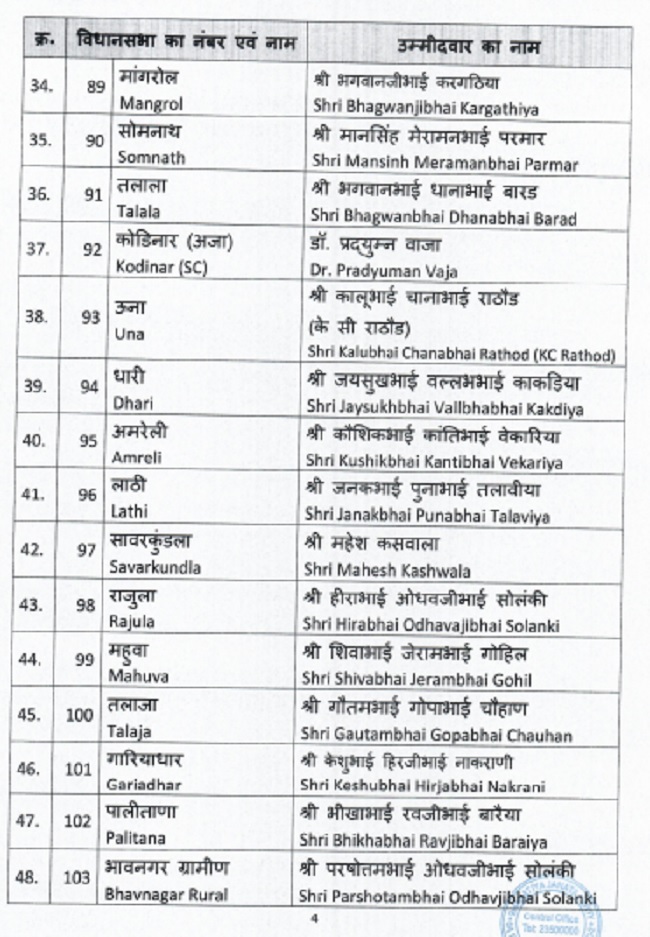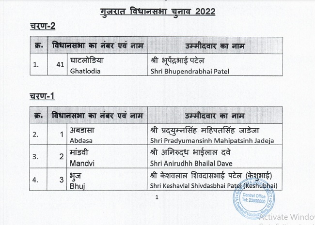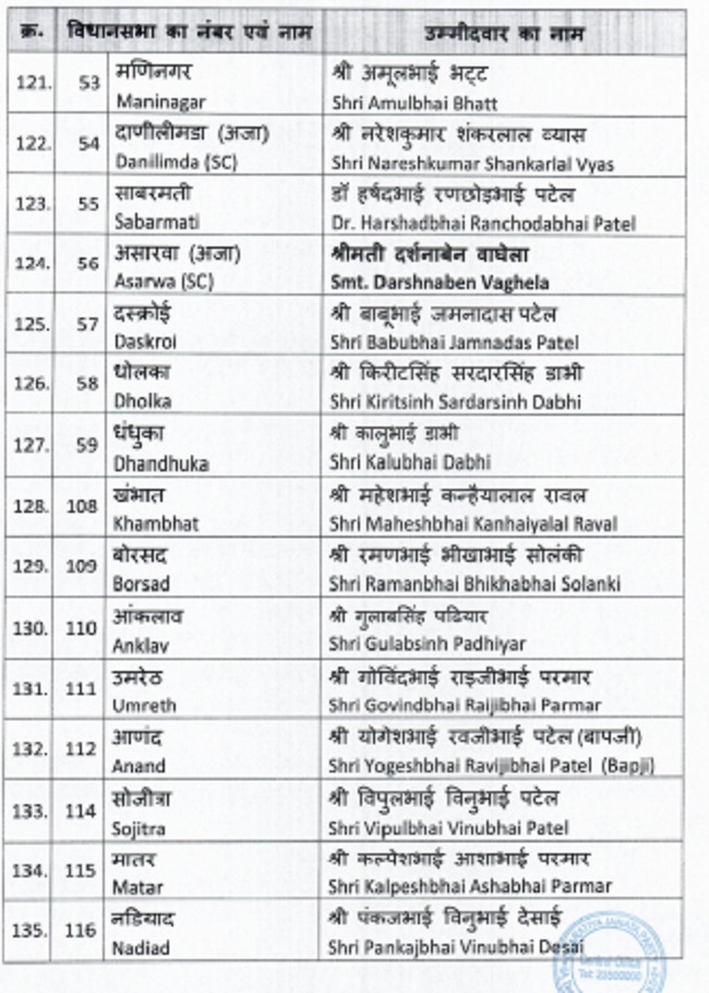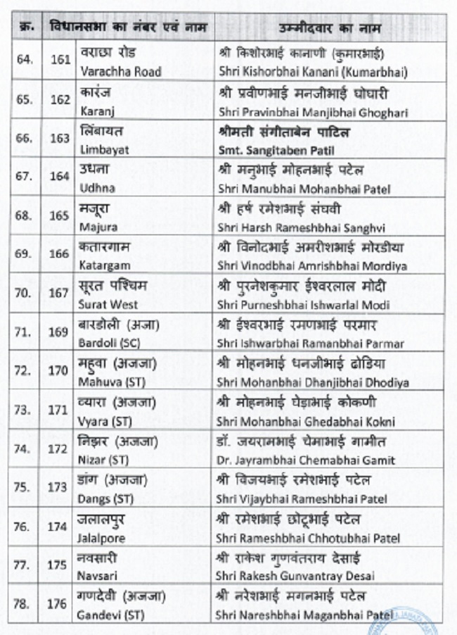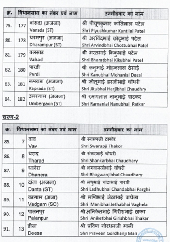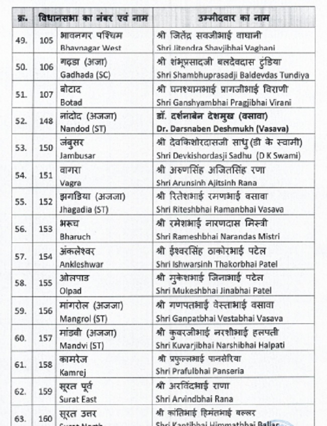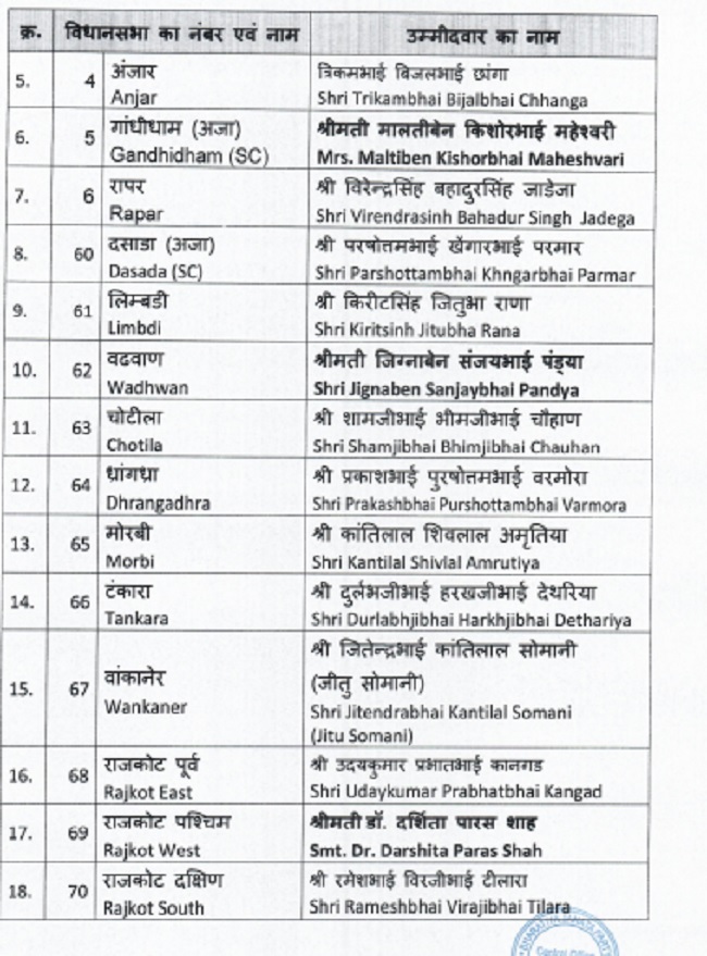 Gujarat Assembly Election भाजपा उम्मीदवारों की लिस्ट